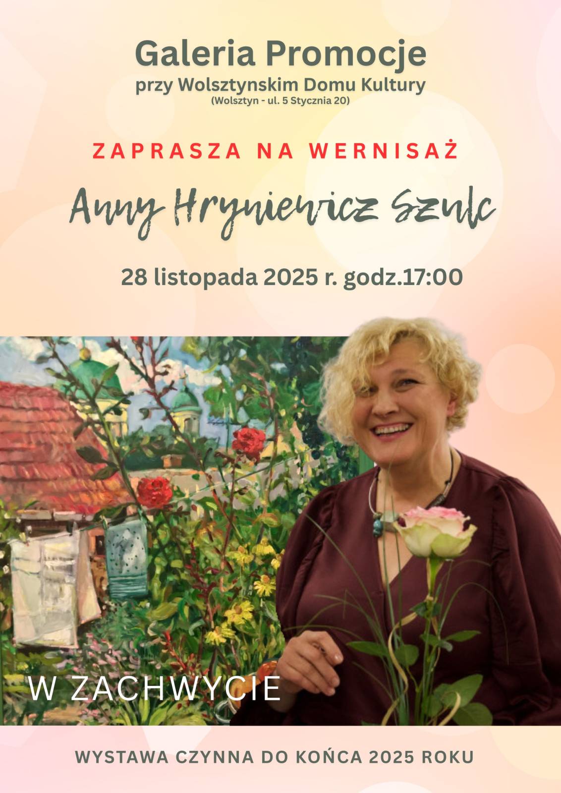 Już wkrótce przestrzeń Galerii „Promocje” wypełni się światłem, kolorem i delikatną poetyką natury za sprawą najnowszej wystawy Anny Hryniewicz-Szulc pt. „W zachwycie”. To zaproszenie do świata, który koi, porusza i przypomina, jak wiele piękna tkwi w chwilach, nad którymi rzadko się zatrzymujemy.