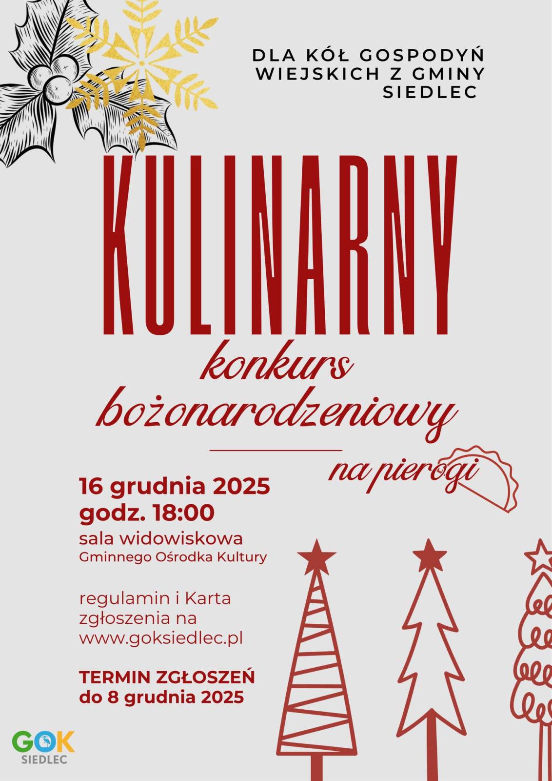 Regulamin i karta zgłoszenia: https://goksiedlec.pl/kulinarny-konkurs-bozonarodzeniowy/