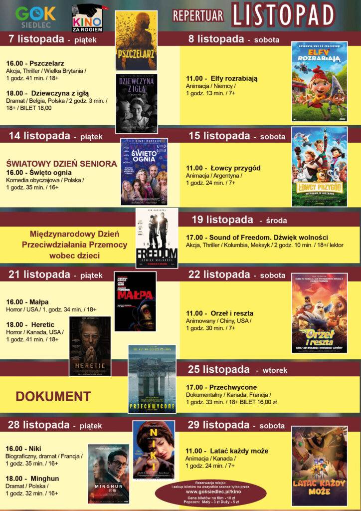 Kino za Rogiem Siedlec - repertuar listopadowy